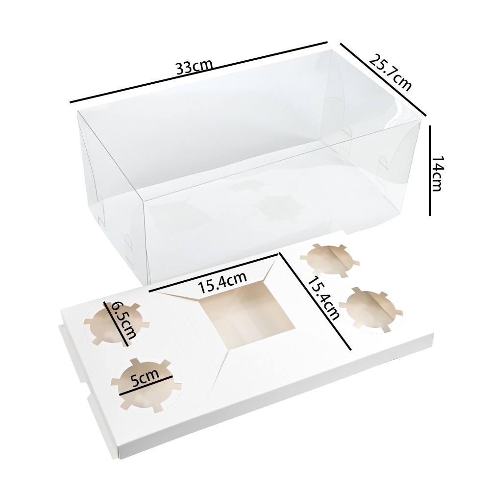Συνδυαστικό κουτί με διάφανο καπάκι, σχεδιασμένο για 2 cupcakes και 1 μικρό κέικ τύπου Bento. Ιδανικό για viral γλυκά, θεματικά σετ και δώρα ζαχαροπλαστικής. Το διάφανο καπάκι προσφέρει ορατότητα και ενισχύει την παρουσίαση, ενώ η εσωτερική διαμόρφωση κρατά τα γλυκά σταθερά και προστατευμένα. Κατάλληλο για γενέθλια, επετείους, baby showers και εμπορικές βιτρίνες με έμφαση στο visual impact.
