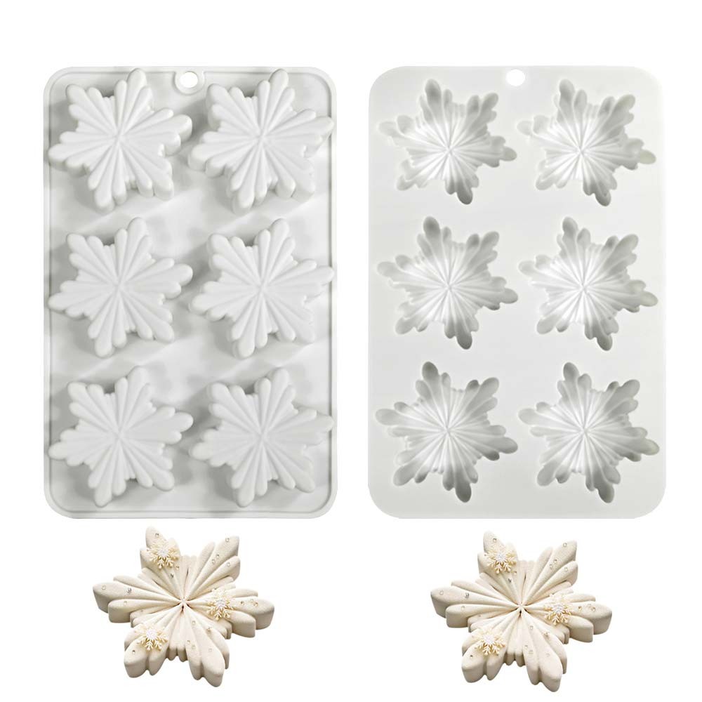 Καλούπι σιλικόνης για διακοσμητικά σε σχήμα νιφάδας. Ιδανικό για τούρτες και γιορτινά γλυκά. Περιλαμβάνει 6 θέσεις.