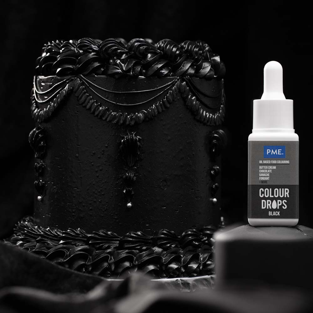 Μετά από 2 χρόνια εντατικών δοκιμών, τα PME Colour Drops σχεδιάστηκαν για να κατακτήσουν τις πιο απαιτητικές αποχρώσεις. Το μαύρο Colour Drops προσφέρει έντονο, καθαρό αποτέλεσμα χωρίς γκριζάρισμα. Η λιποδιαλυτή σύνθεση με βάση έλαια αγαπά το βούτυρο και ενσωματώνεται άψογα σε βουτυρόκρεμα, σοκολάτα, ganache, ζαχαρόπαστα και μείγματα κέικ, χωρίς σπασίματα ή ξεθώριασμα.