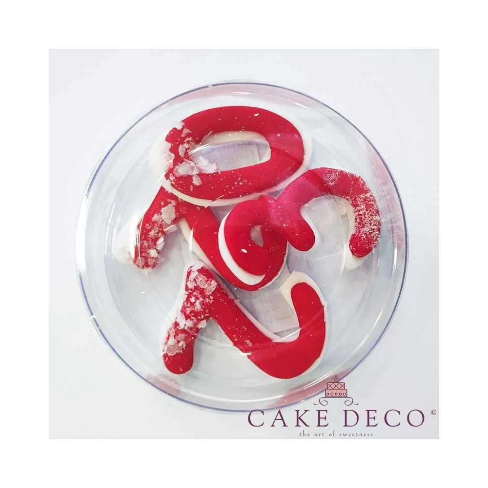 Είναι γραμμένο σε 2 off center στρώσεις για ομορφότερο βάθος, μια με λευκή ζαχαρόπαστα στη βάση και κόκκινη ζαχαρόπαστα απο πάνω ενώ έχει επίσης βρώσιμο χιόνι από τριμμένη Βαφλα (Wafer Paper)!