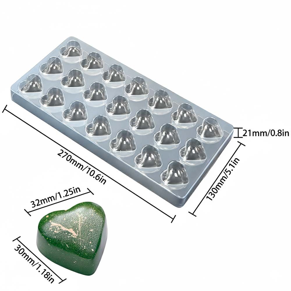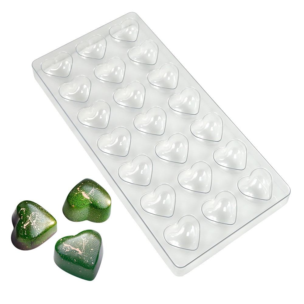 PET mold for heart-shaped chocolates. 21 cavities. Perfect for gifts and seasonal treats.