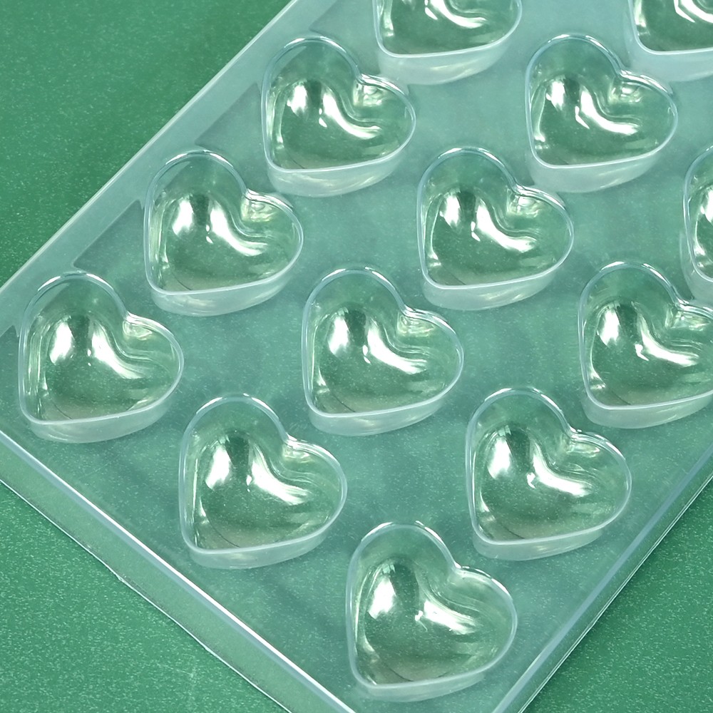 The heart shape adds emotional appeal and elegant aesthetics. PET molds offer stability, clarity, and repeatable use with high precision.