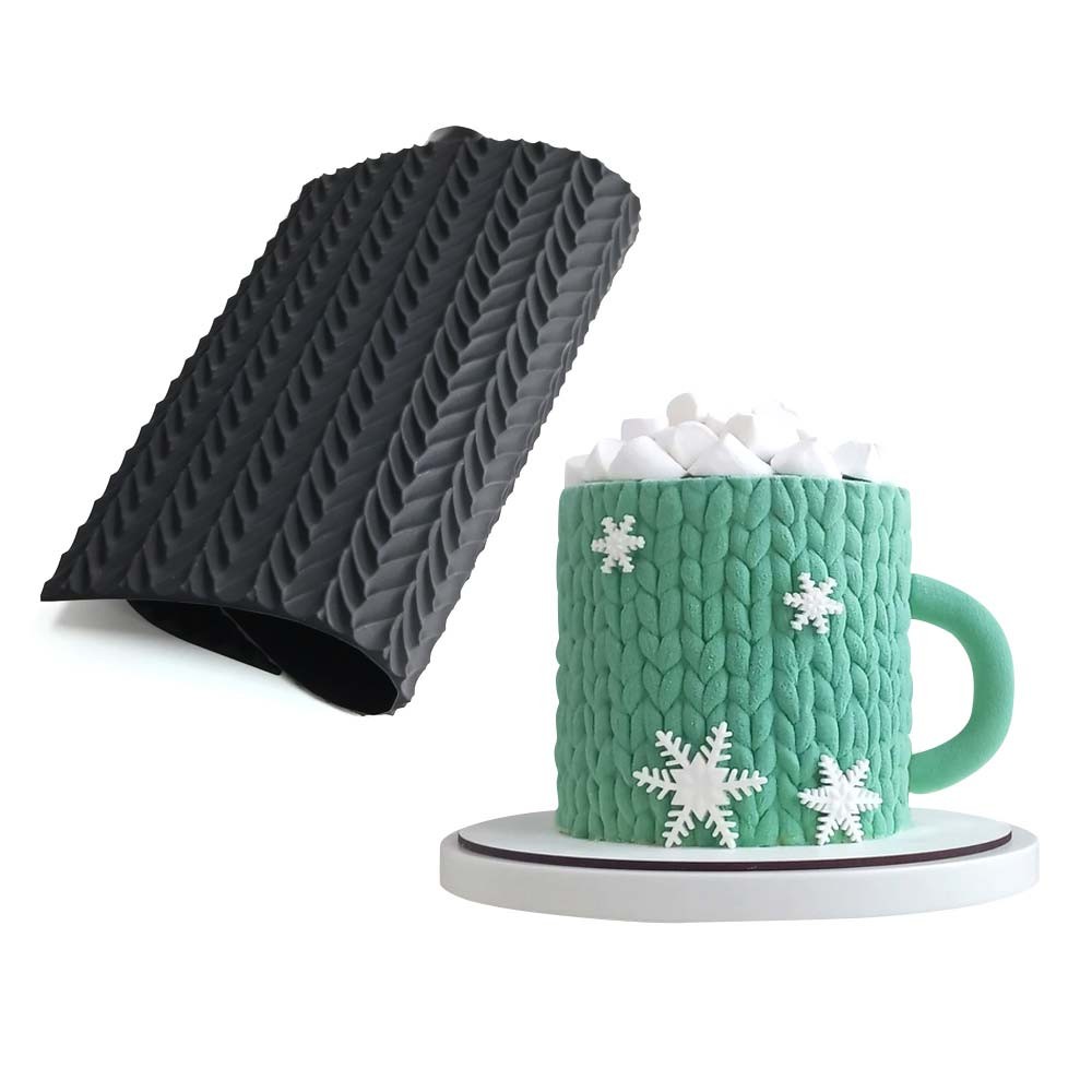 Cable knit silicone mat for imprinting on cakes and fondant. Ideal for winter desserts and baby showers.