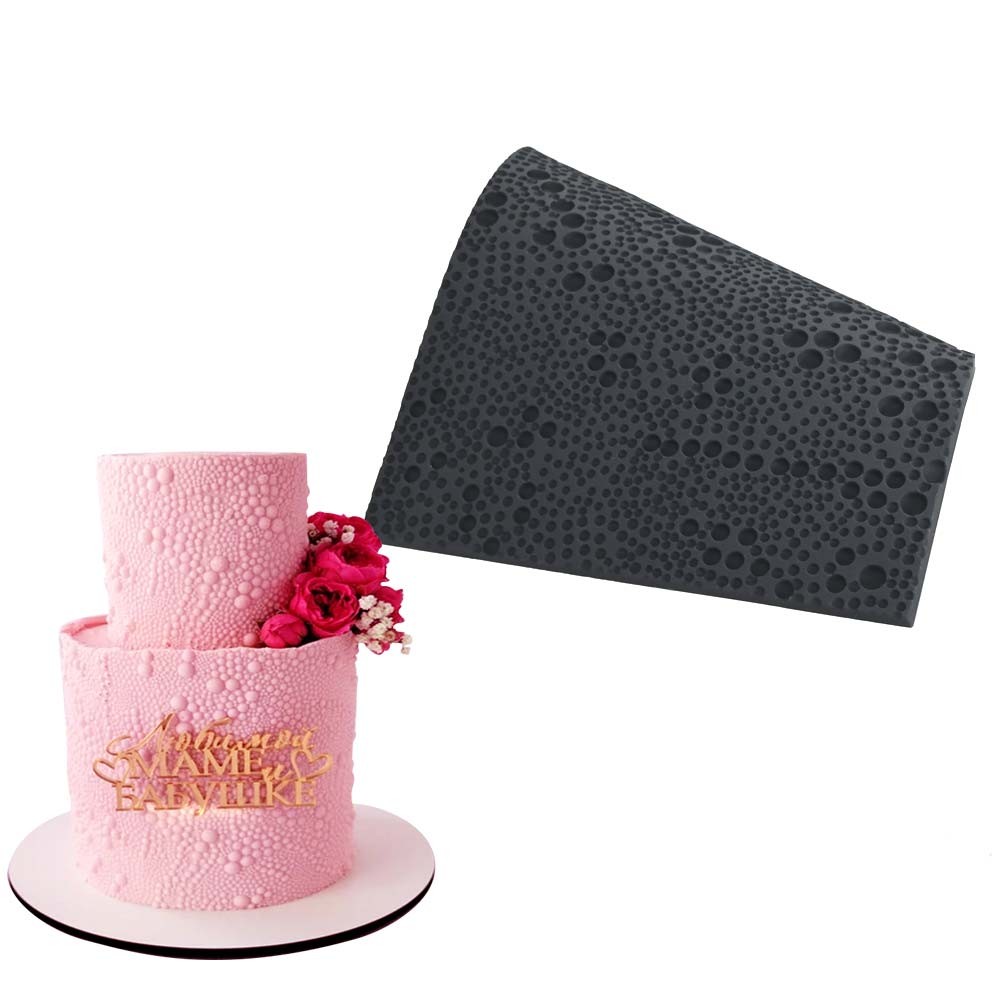 Bubble-textured silicone mat for cake walls and fondant panels. Ideal for kids’ parties and themed decoration.